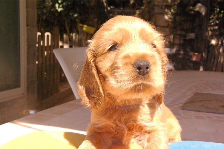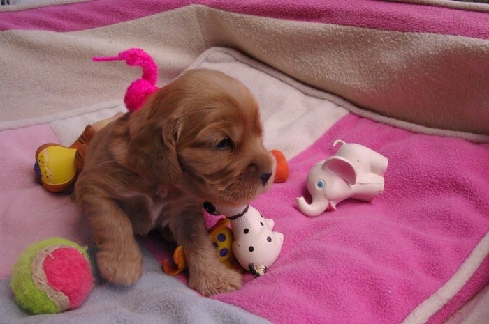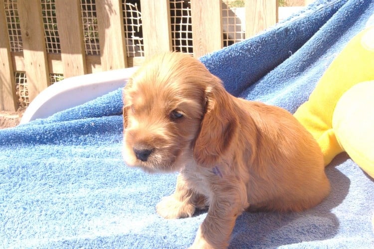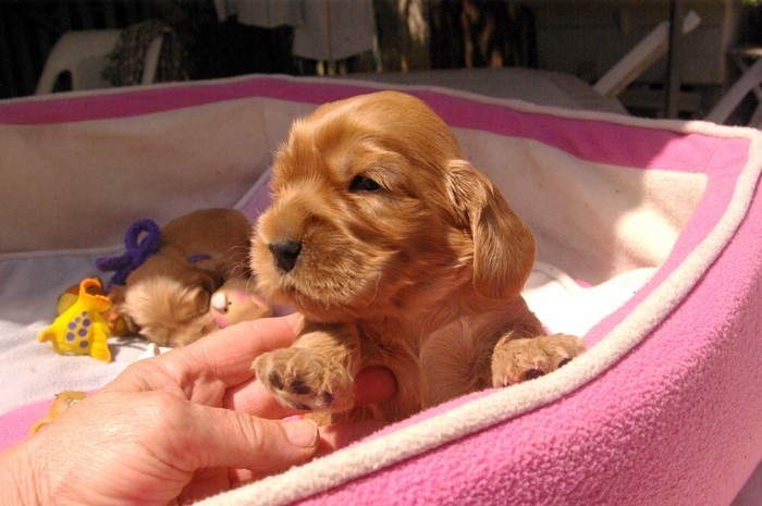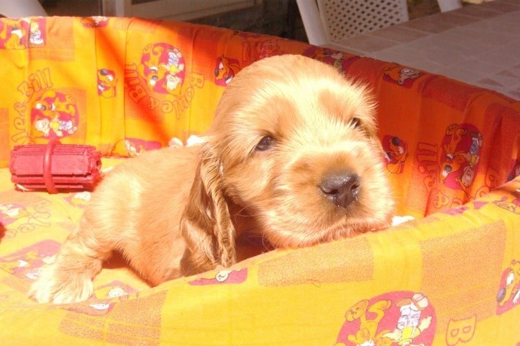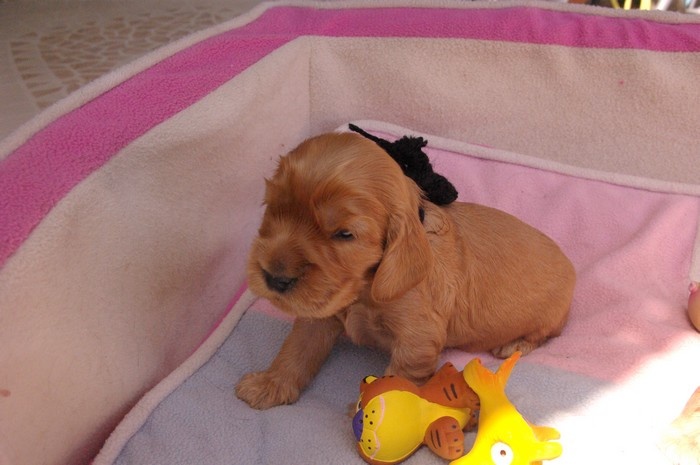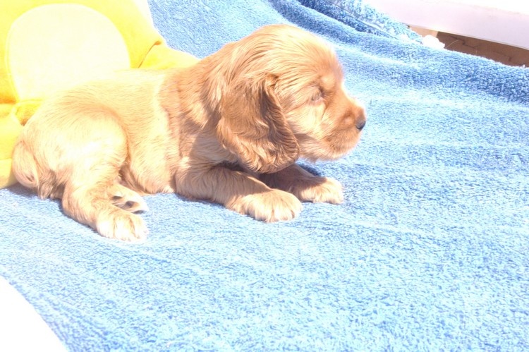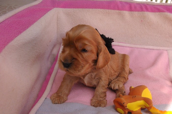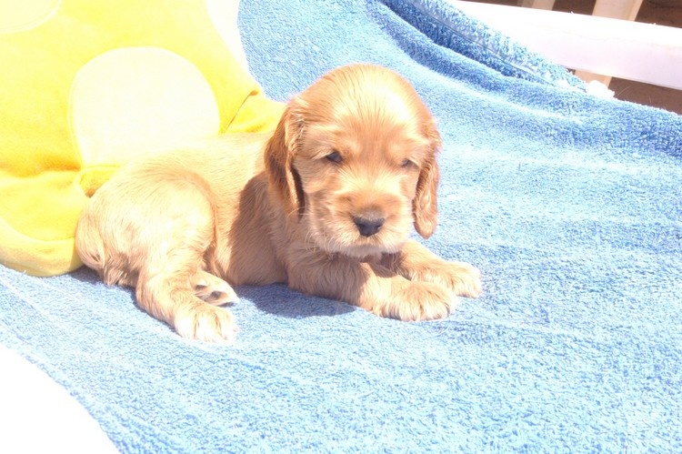 Magnifique cocker golden trés clair , le plus petit de la portée mais dejà trés dégourdi